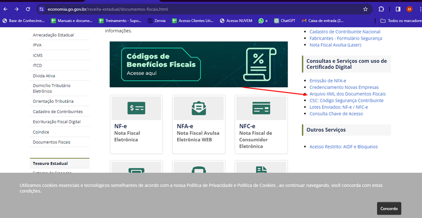 Primeiramente, deve se acessar o seguinte link: https://www.economia.go.gov.br/receita-estadual/documentos-fiscais.html